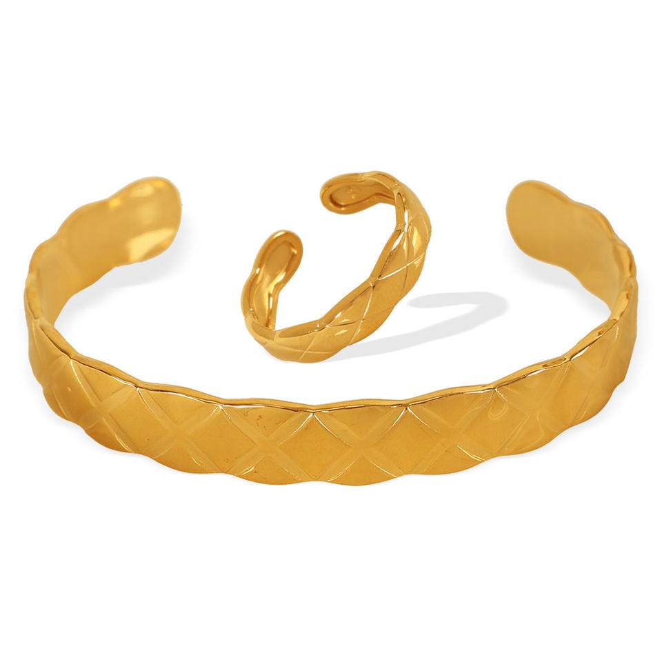 Conjunto de pulseras en forma de C con textura irregular de estilo europeo, brazalete ajustable en oro y plata para mujer, diseño geométrico