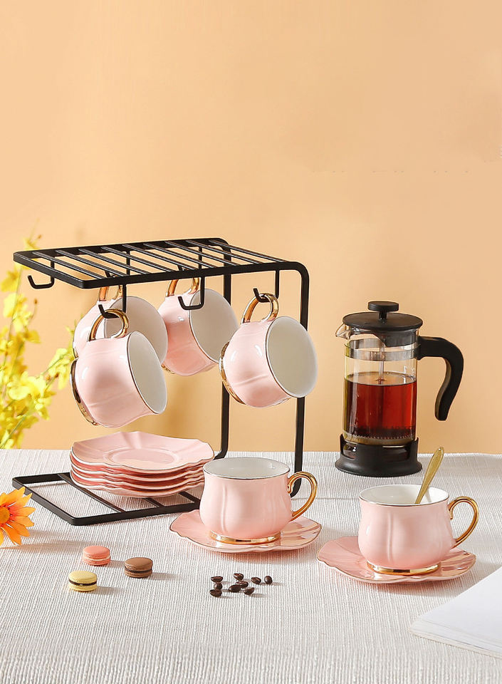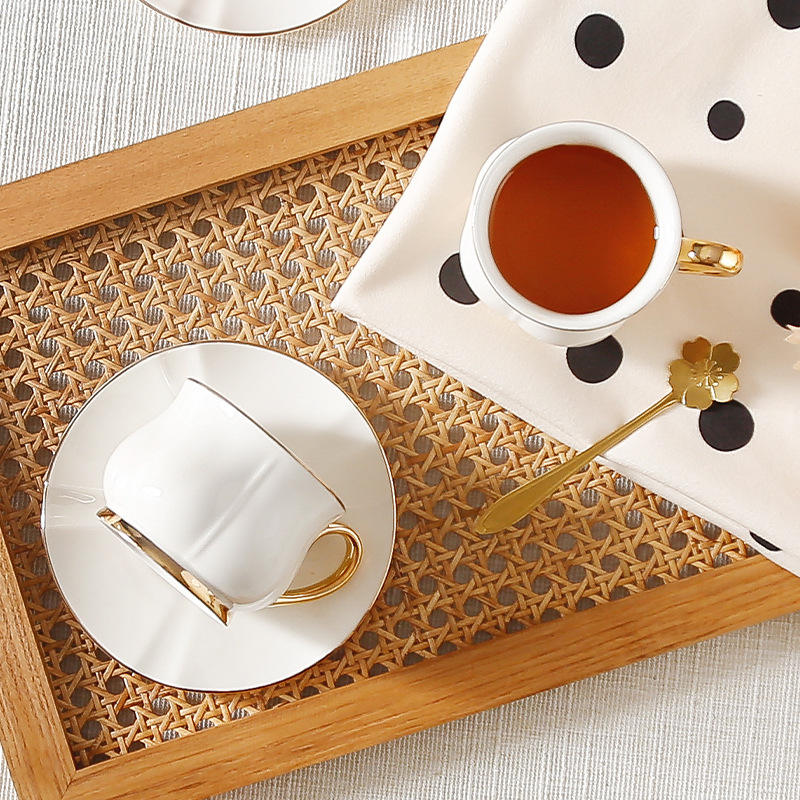 Juego de Tazas de Cerámica con Asa Dorada de Estilo Europeo, de Lujo Ligero, de Alto Valor, para Café, Té de la Tarde, Té de Flores, Espresso, Vajilla