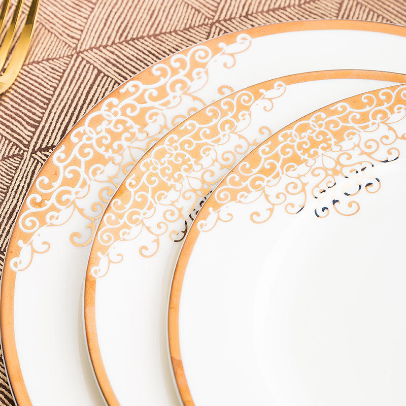 Juego de platos de cerámica de lujo estilo europeo Phnom Penh, cubiertos con relieve, vajilla de porcelana para hogares, restaurantes y regalos