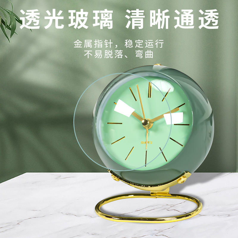 Reloj de escritorio de Metal de estilo europeo, reloj despertador circular silencioso de cuarzo para dormitorio, sala de estar, uso estudiantil, blanco y verde, 6Cm