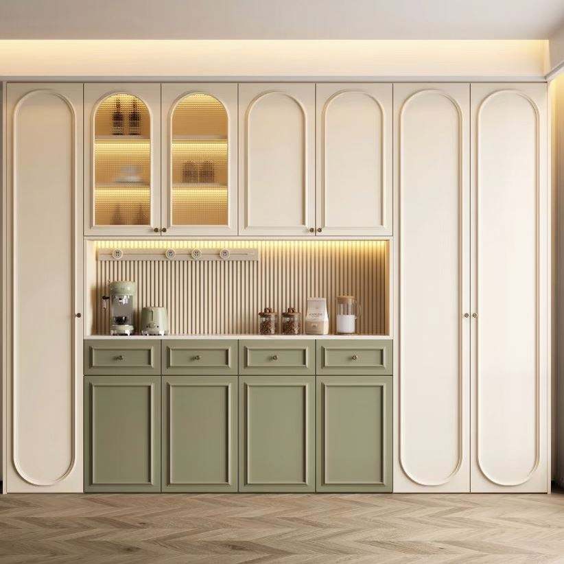Juego de Muebles de Cocina Modulares Modernos de Estilo Europeo, Puertas de Madera Maciza, Construcción de Tablero de Melamina, Encimera de Mármol, Montaje en Pared, Alto