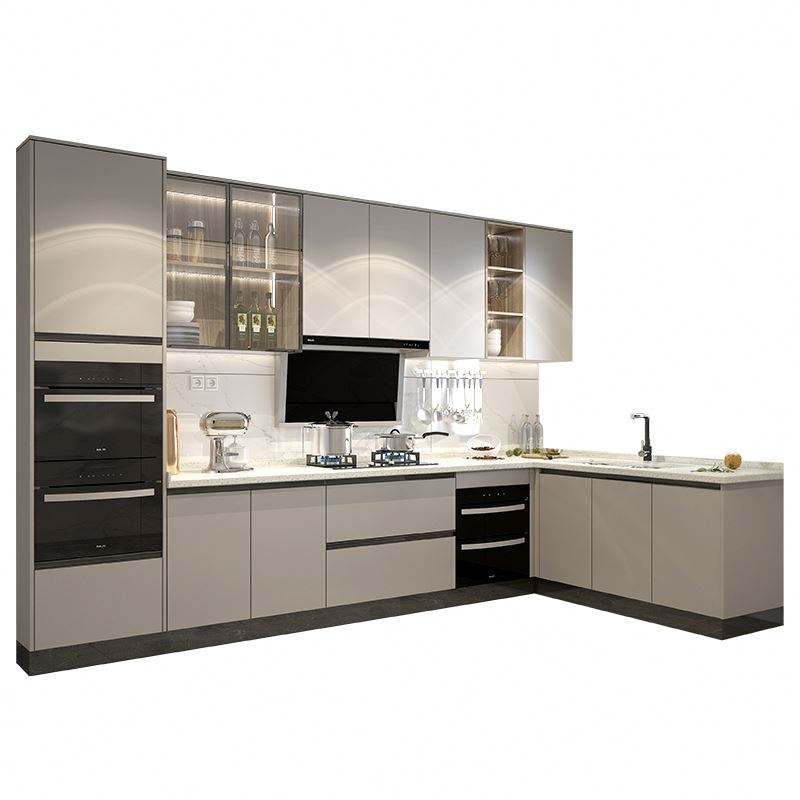 Muebles de Cocina Modernos de Estilo Europeo con Almacenamiento, Encimeras de Acero Inoxidable con Granito, Juego de Muebles de Lujo Importados para Despensa