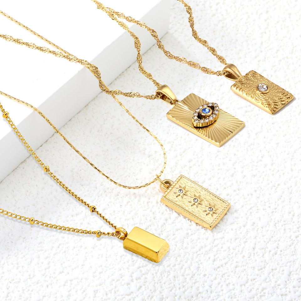 Collar con colgante rectangular de estilo europeo, diseño de estrella de acero inoxidable para mujer, joyería de regalo
