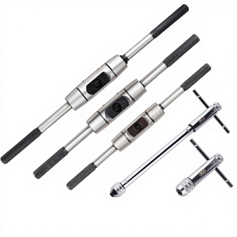 Llave de roscado manual reforzada de estilo europeo, herramienta de roscado de acero integral para machos de roscar circulares métricos/imperiales