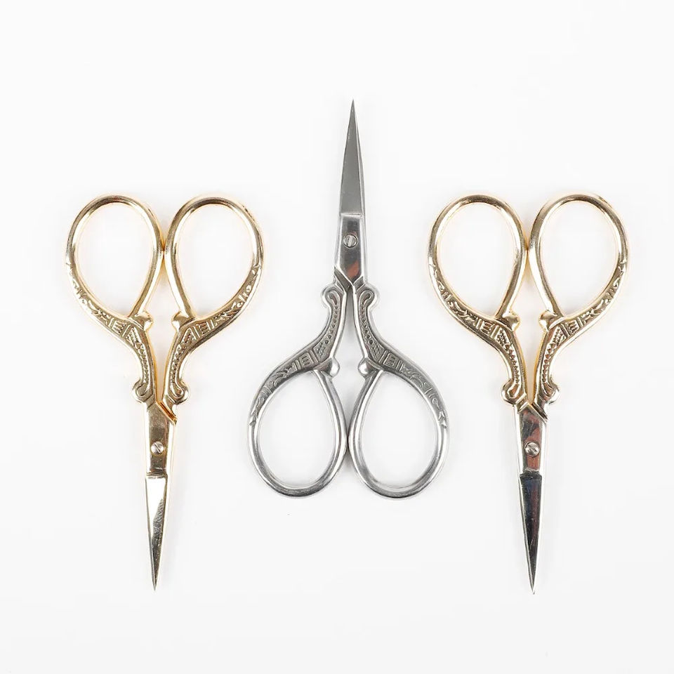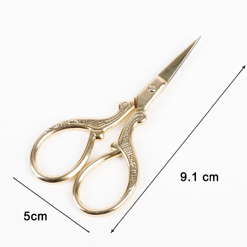 Tijeras de costura de estilo europeo, tijeras de sastre de acero inoxidable dorado para bordado, herramientas de costura para el hogar
