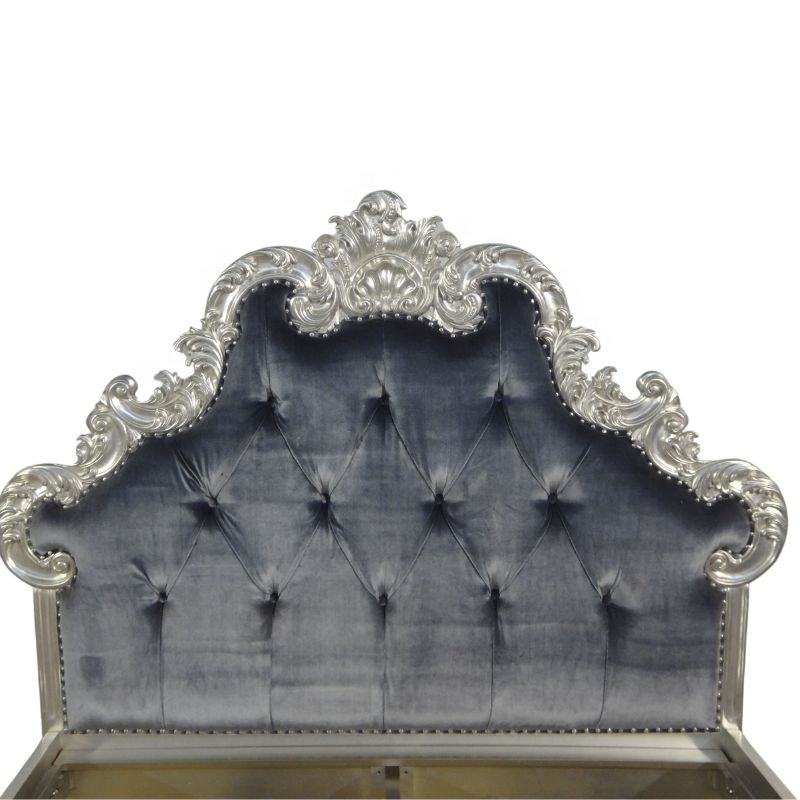 Marco de cama de madera maciza de estilo europeo, cama tamaño Queen con cabecera tapizada y con mechones en tela de terciopelo para muebles de dormitorio