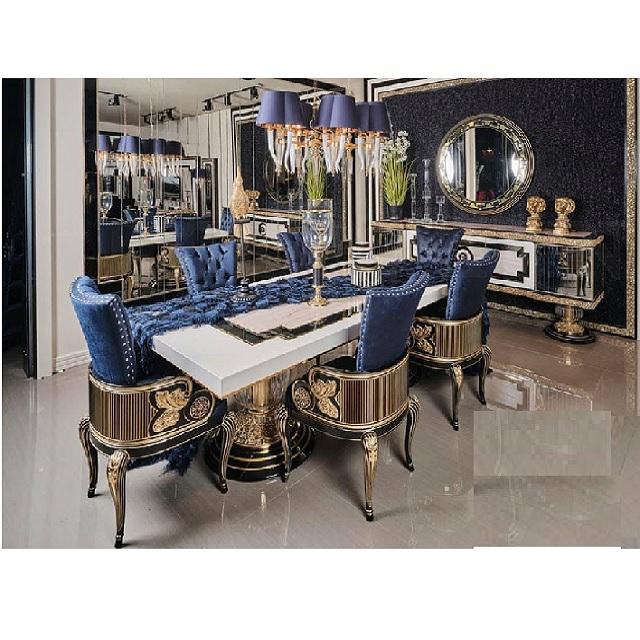 Juego de Mesa de Comedor Moderno de Madera Maciza Estilo Europeo, Elegante Juego de Mesa de Comedor Barroco Moderno, Juego de Mesa de Comedor Tallado a Mano Moderno, EE. UU.