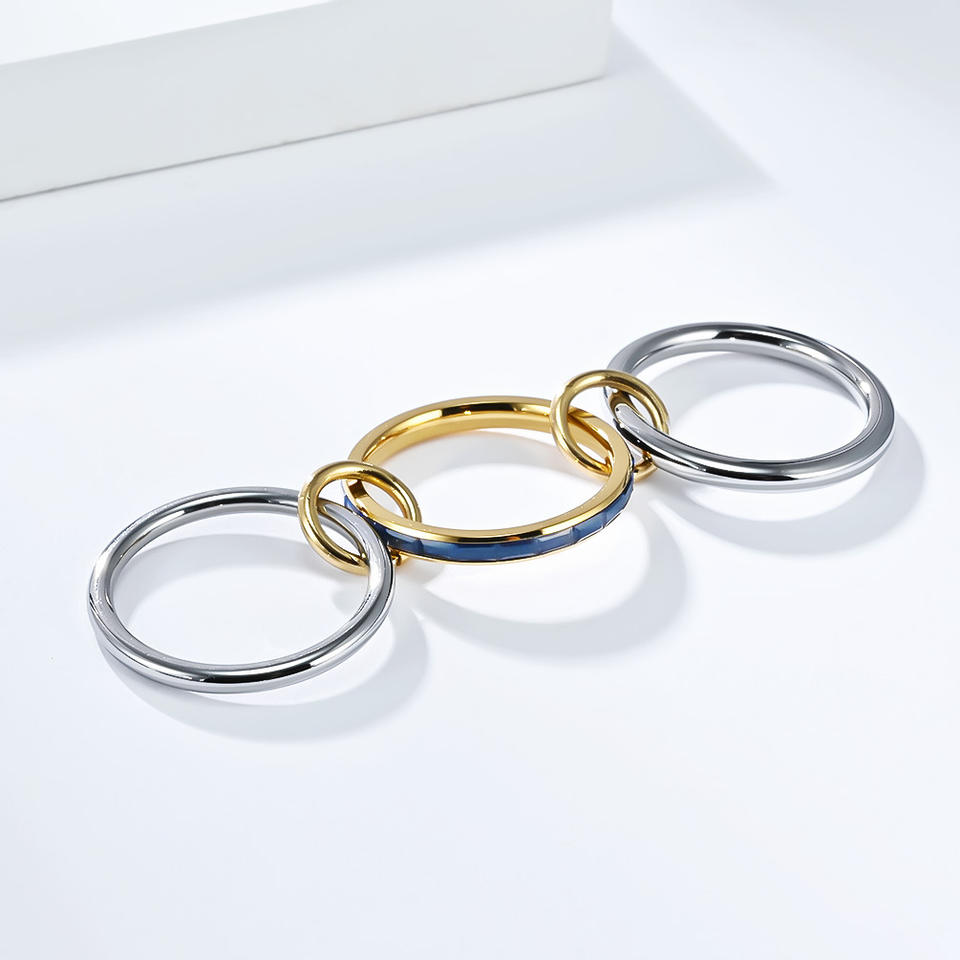 Anillo de Tres Capas Apilables Estilo Europeo, Anillo de Titanio con Diamantes, Joyería de Boda para Mujer, Regalo, Forma Geométrica, Engaste Pavé