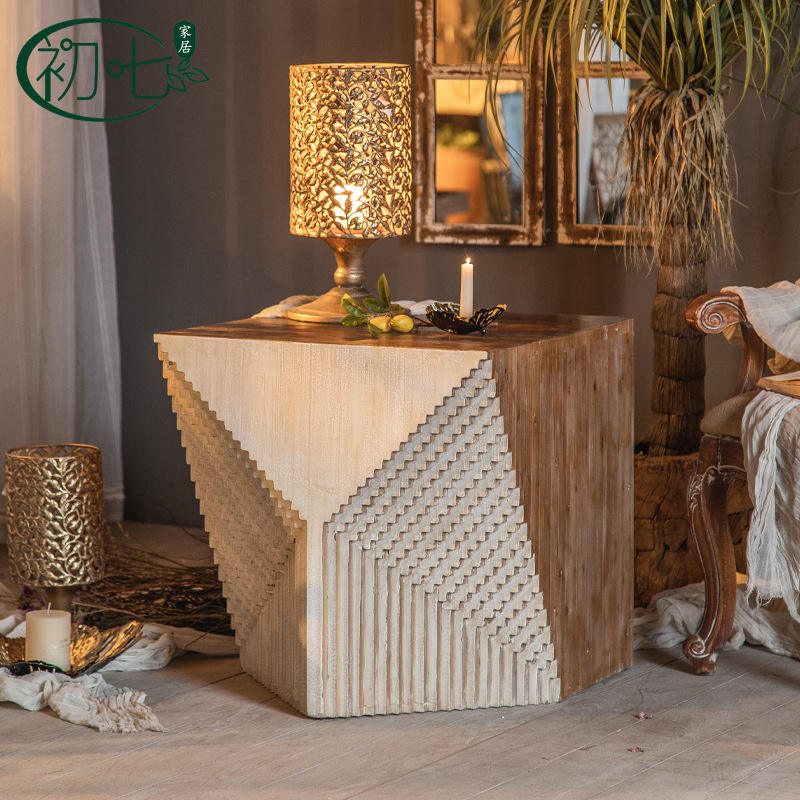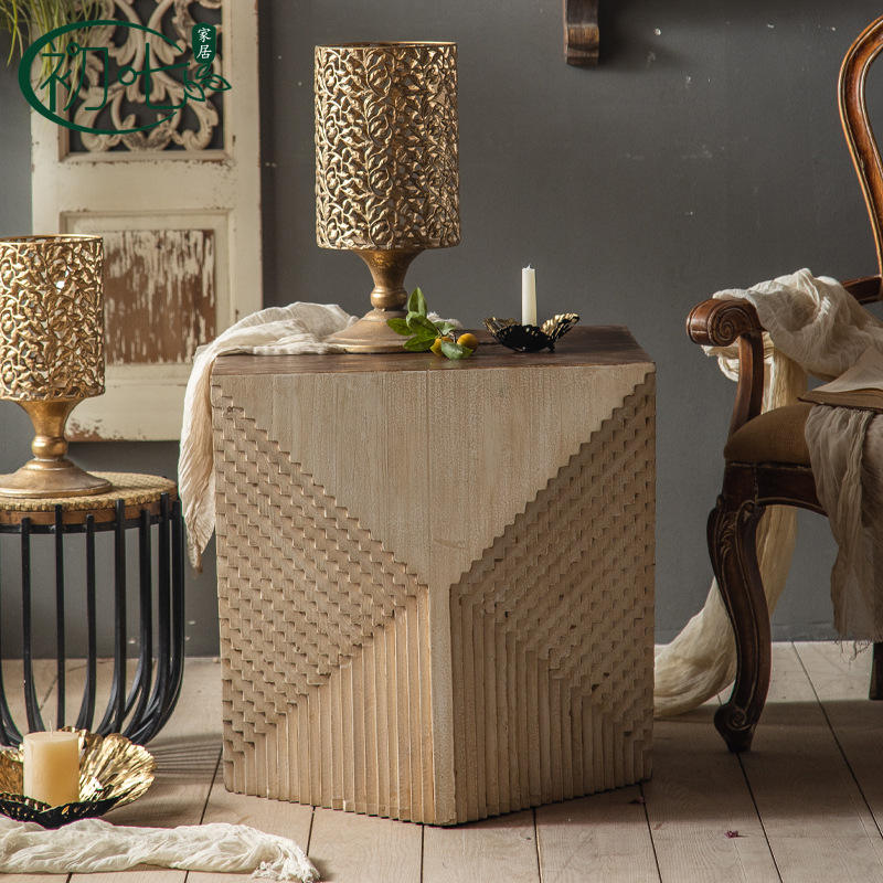 Mesa de centro de madera de estilo europeo, diseño cuadrado retro envejecido para sala de estar, uso en esquina de sofá A2175