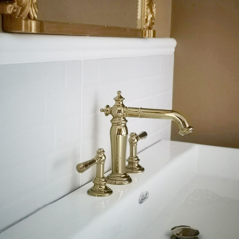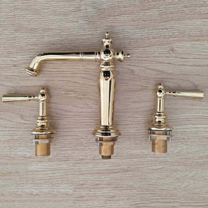 Grifo mezclador de latón para lavabo de baño de 3 agujeros con doble manija de estilo tradicional europeo