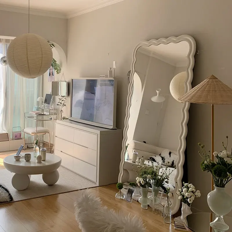 Espejo ondulado europeo decoración minimalista diseño de vestidor crear espejo Funky cuadrado estético Spiegel varita decoraciones para el hogar