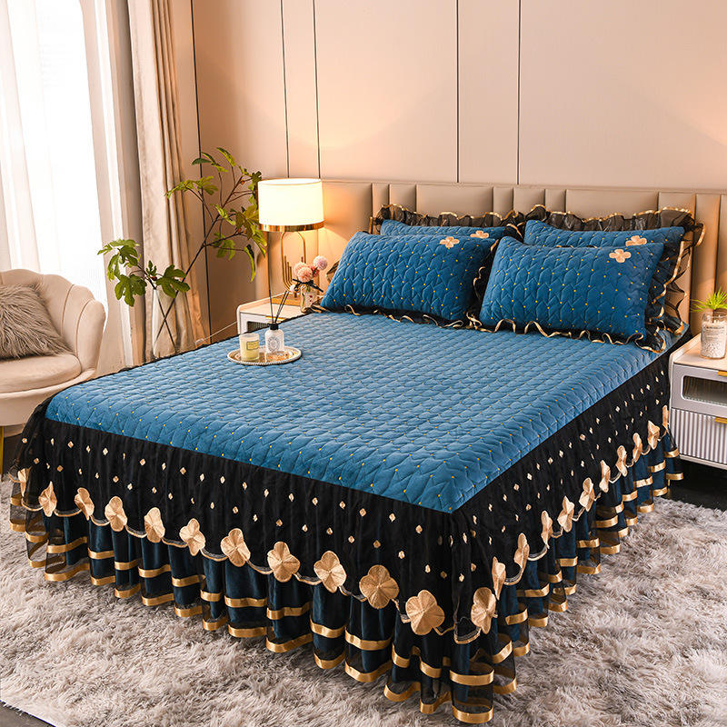 Juego de Ropa de Cama con Faldón Europeo para Invierno, Cubrecama Doble con Funda de Almohada, Textiles para el Hogar y Hoteles