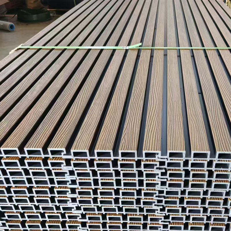 Revestimiento de pared europeo Wpc Paneles de pared exterior absorbentes de sonido Tableros de revestimiento de plástico de madera impermeables