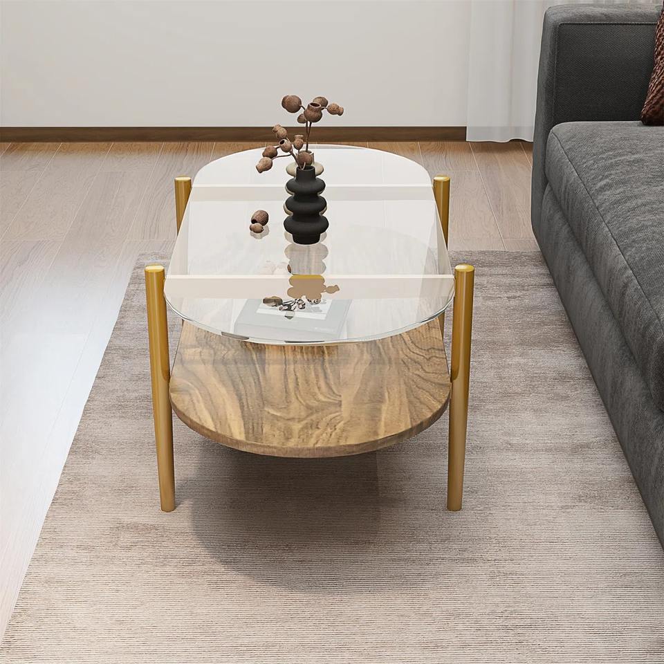 Mesa de Centro de Estilo Europeo y Americano, Simple, Moderna, Ecológica, Dorada, para Apartamentos Pequeños, Sala de Estar, Estilo Ligero y Lujoso, de Vidrio