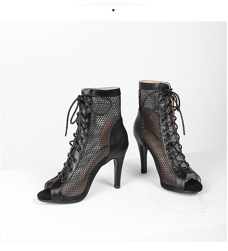 Botas frías de estilo europeo y americano para mujer, botas cortas de tacón fino con agujeros para baile de Jazz
