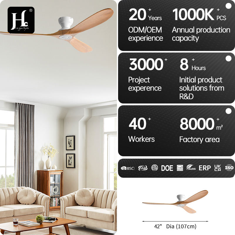 Ventilador de Techo Decorativo Europeo con Control Remoto Silencioso de 3 Aspas, de Madera, Bldc, Moderno, para Hogar y Hotel