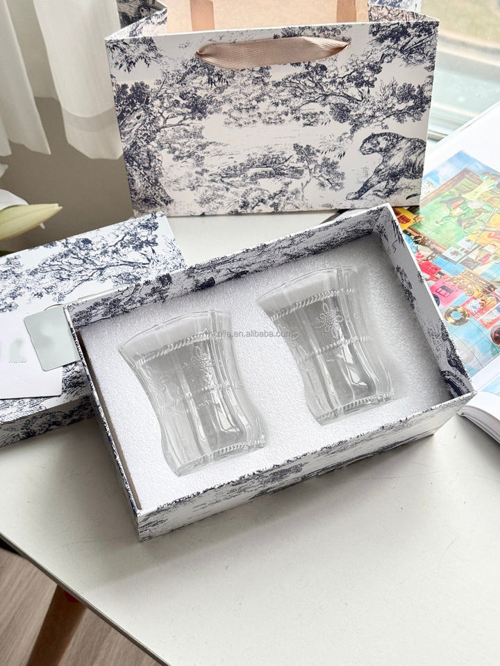 Copas de vino artesanales con relieve estilo Art Deco europeo en un juego completo con caja de regalo