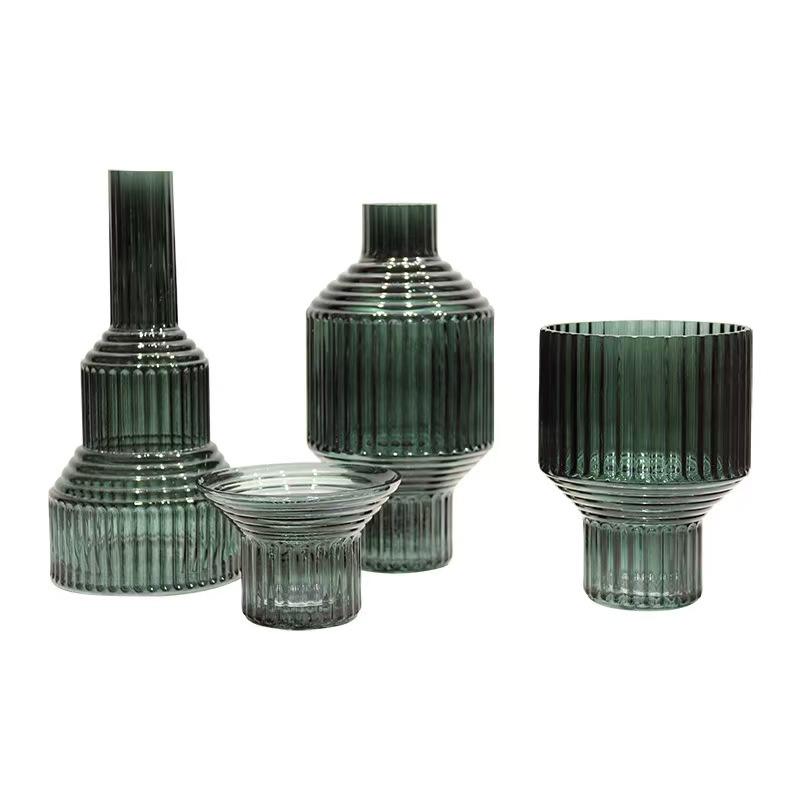 Jarrón de Vidrio con Patrón Vertical de Estilo Europeo y Gran Capacidad