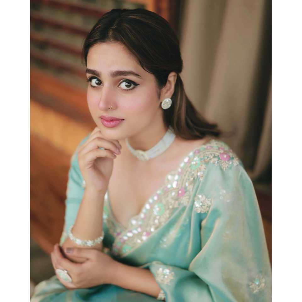 Sari para fiesta de noche con secuencia y bordado de cordones
