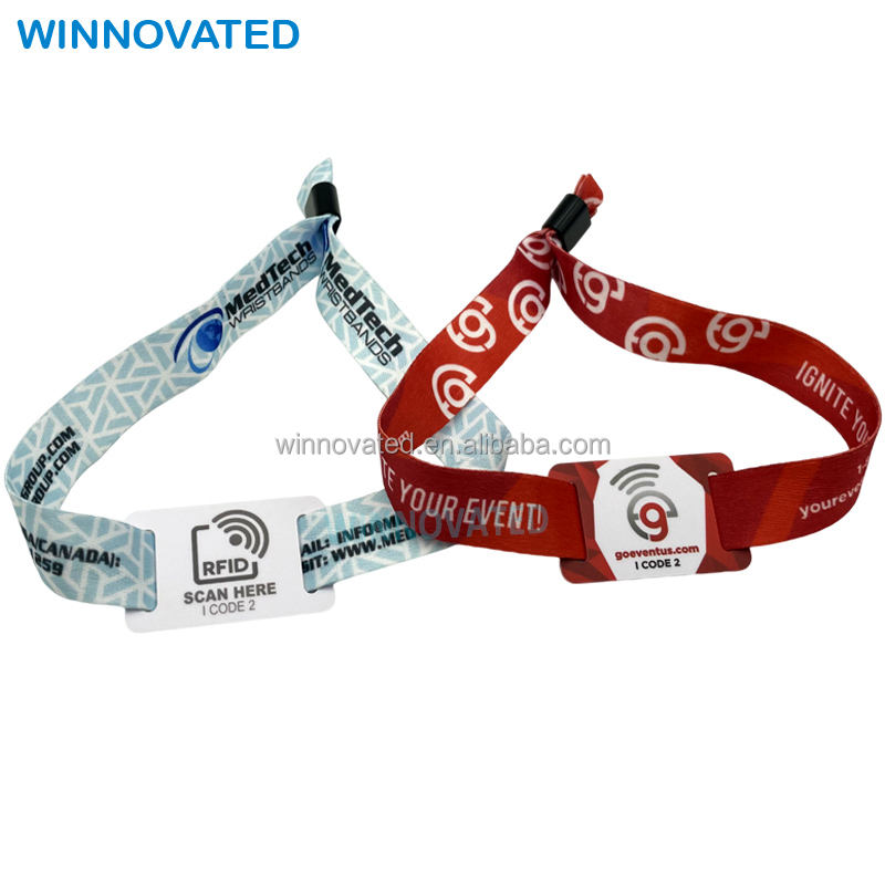 Entradas para eventos 1K Pulsera RFID de tela ajustable sin efectivo personalizada imprimible NFC