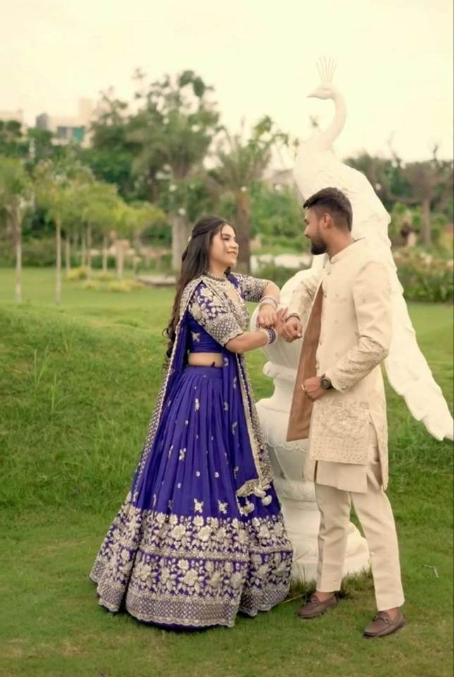 Tela de Seda Chinon 100% Pura, Hermoso Diseño, Color Brillante, Trabajo con Hilos y Lentejuelas, Talla M a XXL, Lahenga Choli de Diseñador para Novia