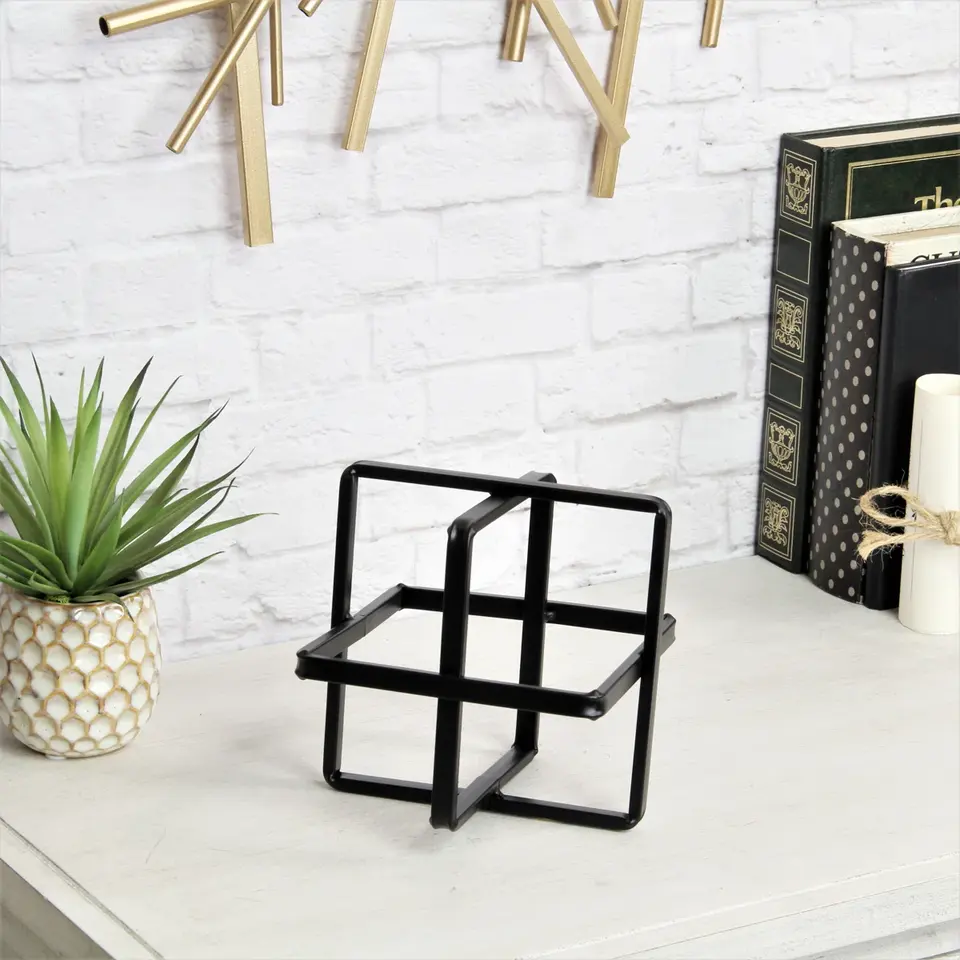 Escultura Decorativa Geométrica Moderna Everly Quinn o Alle Black, Cubo de Arte en Alambre Metálico Hecho a Mano con Técnicas de Artesanía
