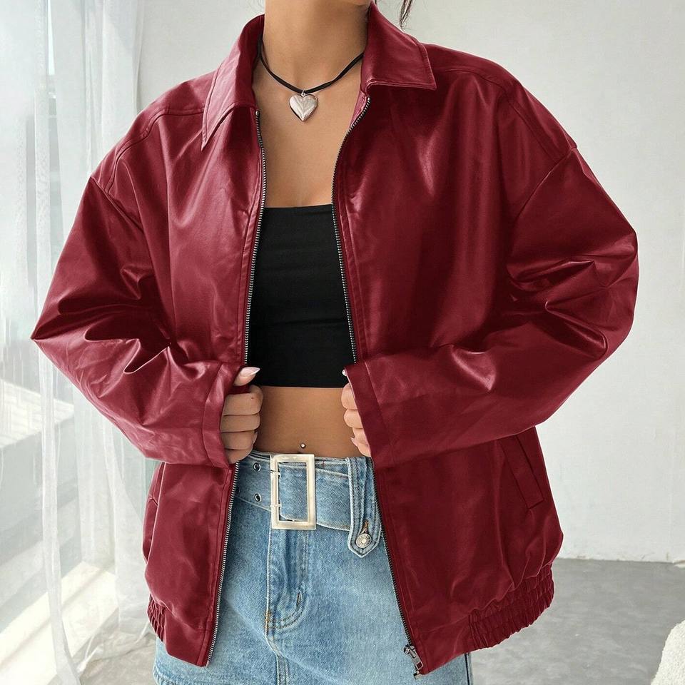 Chaqueta de cuero informal para mujer, ropa de abrigo con estilo a la moda, ropa cómoda de alta calidad, duradera y genuina