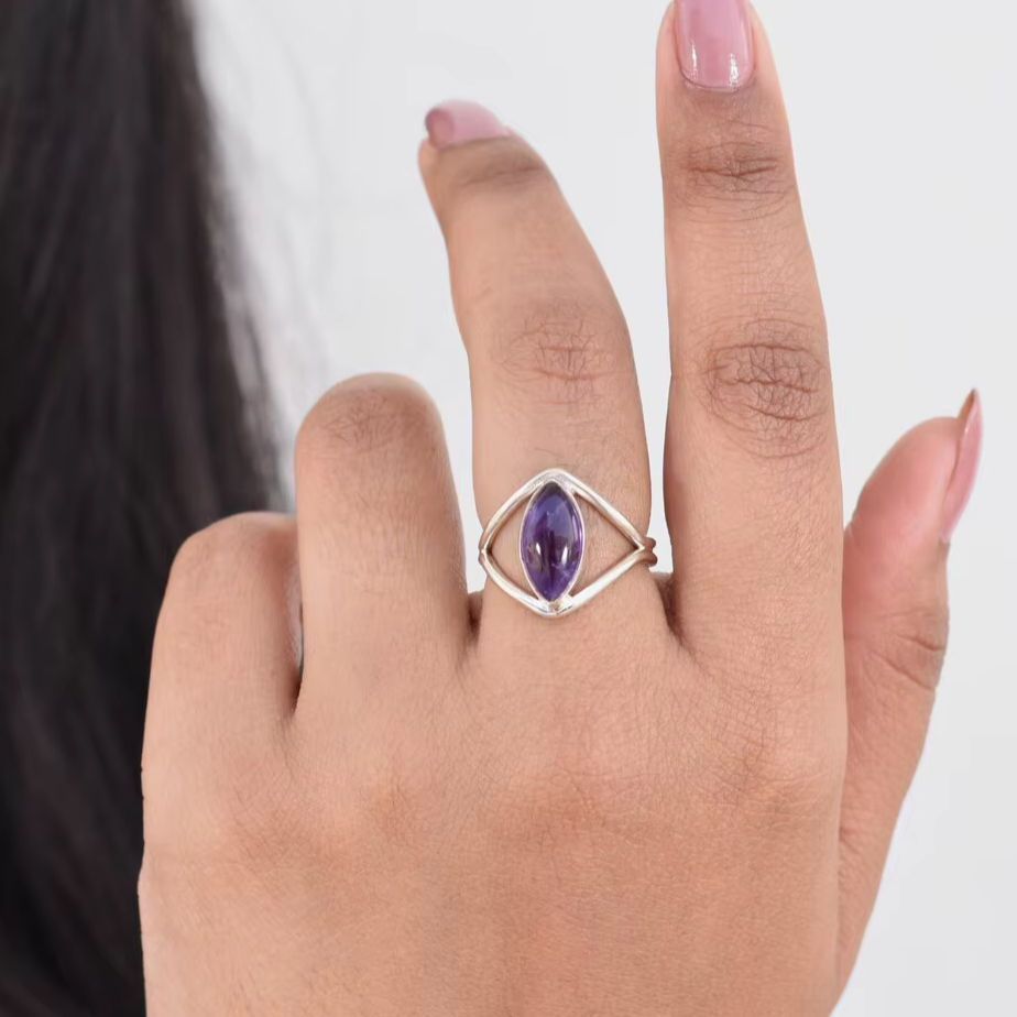 Anillo apilable de amatista de mal de ojo, Plata de Ley 925 hecha a mano, joyería de piedras preciosas naturales, venta al por mayor, banda de diseñador a granel