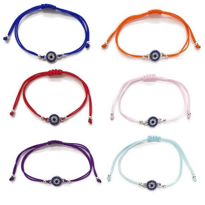 Pulsera de Hilo Macramé con Ojo Turco y Circonita Cúbica, Azul, Rojo, Rosa, Blanco, Negro, Joyería de Moda, Ajustable, Buena Suerte
