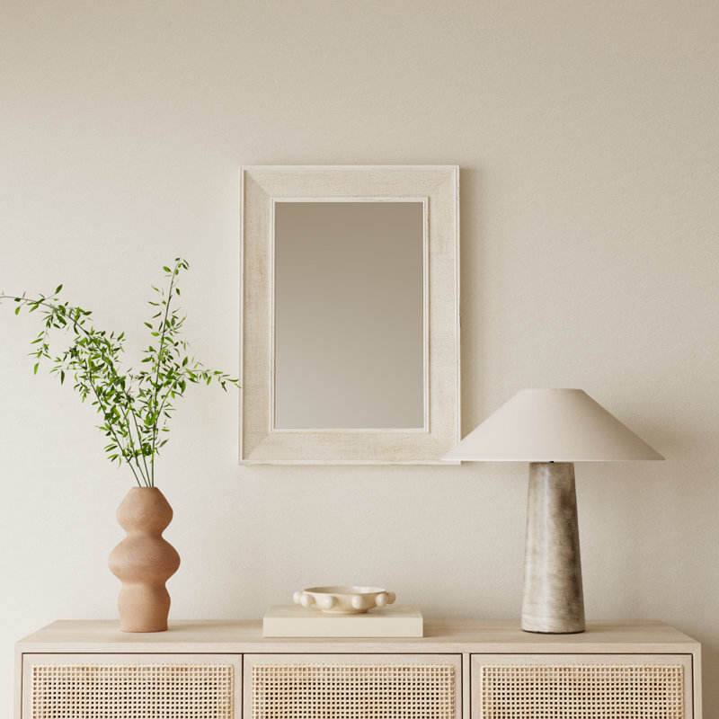 Espejo de pared decorativo Ewart Boho, acento de ratán plano para interiores modernos