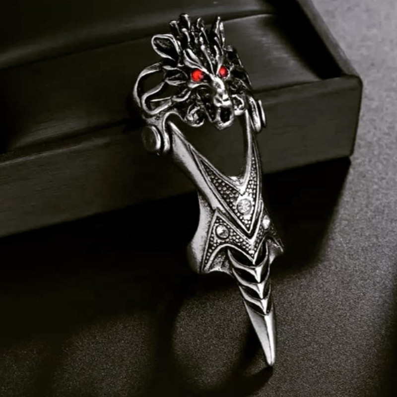 Calavera gótica exagerada de una pieza con incrustaciones de diamantes anillo doble Hipster autodefensa plata boca cerrada dragón conjunto hombre anillo