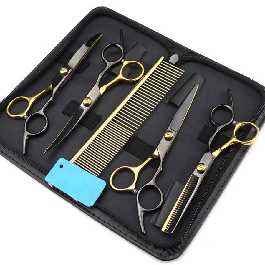 Excelente Kit de tijeras para mascotas de 6 pulgadas, oro, negro, tijeras de corte de pelo afiladas reutilizables para perros, gatos, animales pequeños