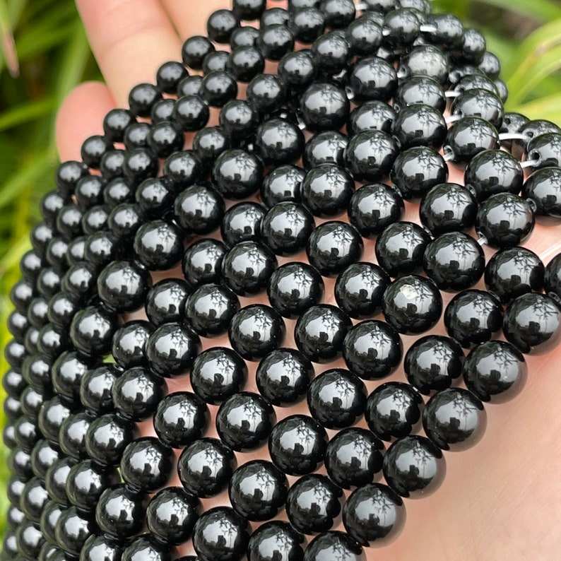 Excelente hebra de cuentas de obsidiana negra, piedra Natural, protección de energía, fabricación de joyas espirituales, regalo de grado Premium