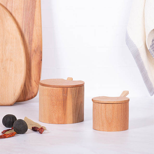 Excelente Caja de Condimentos Premium a Granel, Mini Caja de Almacenamiento de Cocina con Cuchara, Tarro de Especias de Madera de 8 cm