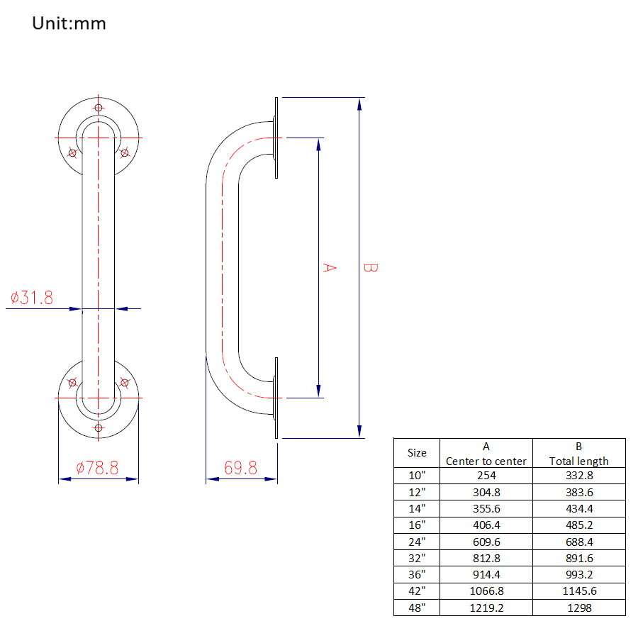 Barra de apoyo Tamaño:10 pulgadas-48 pulgadas