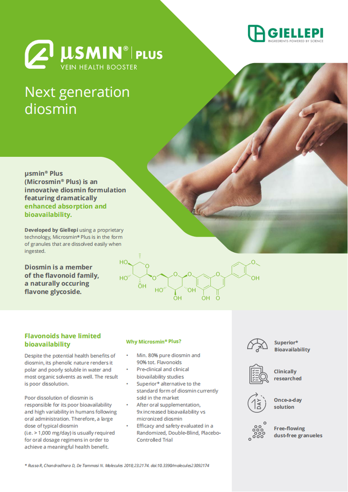 Diosmina (NLT 80% por HPLC) y flavonoides (NLT 90% por HPLC)Ingrediente principal