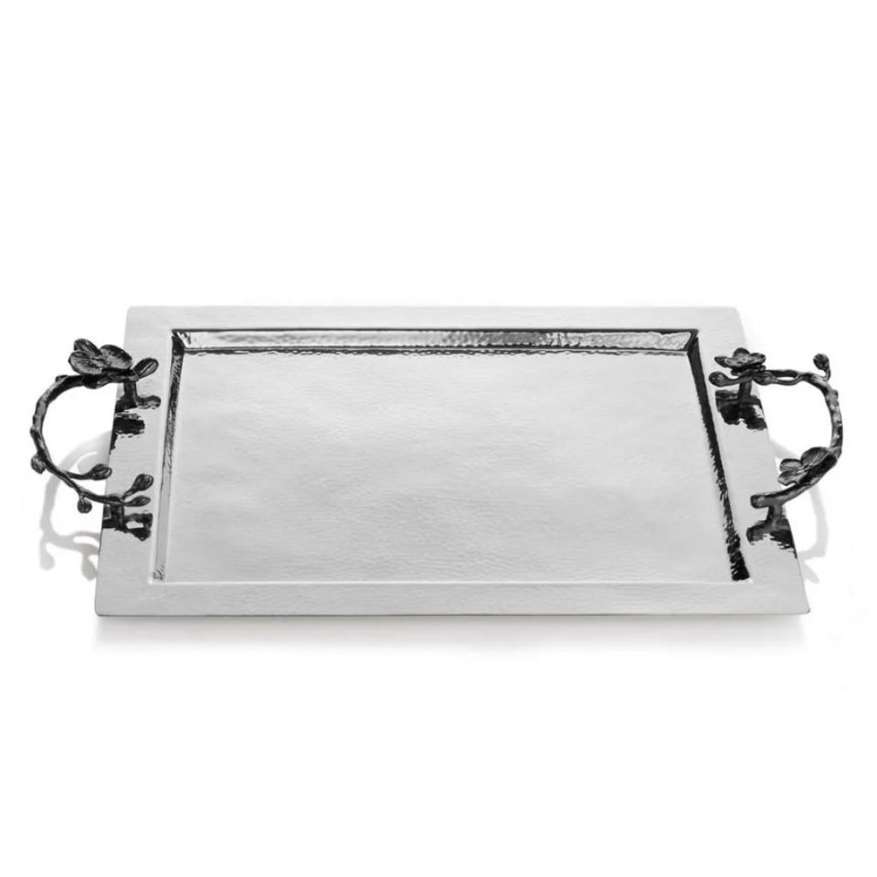 Excelente bandeja de metal de gran tamaño para servir comida y bebidas, bandeja decorativa para servir aperitivos, de primera calidad, con asas negras.