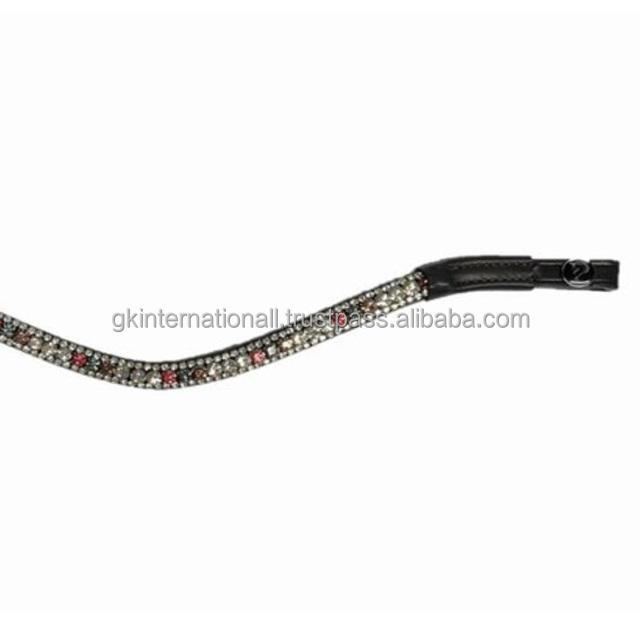 Excelente calidad, 3 filas de cristales multicolores, diamantes de imitación, cadena de diamantes, forma curvada profunda, banda de cuero para cejas de caballo para brida