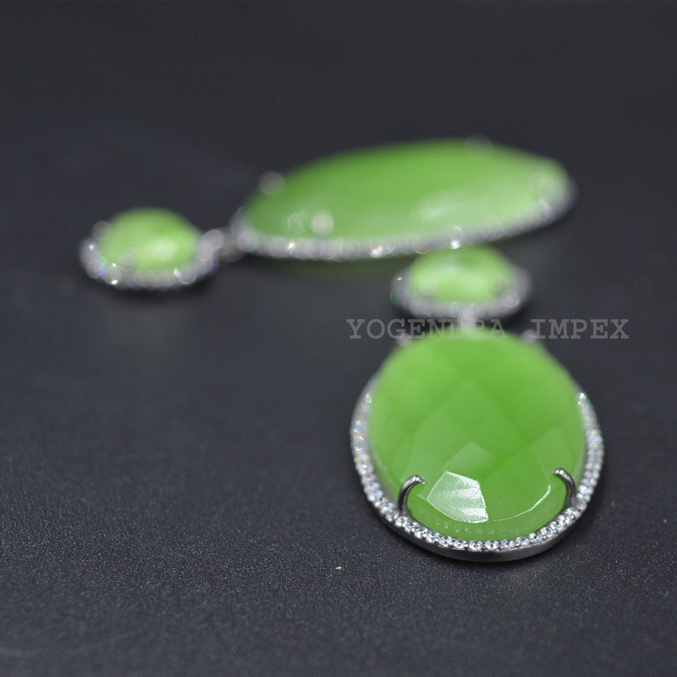 Pendientes colgantes de plata 925 de excelente calidad, piedras preciosas naturales, Monalisa verde mar con CZ para compromiso, boda o fiesta