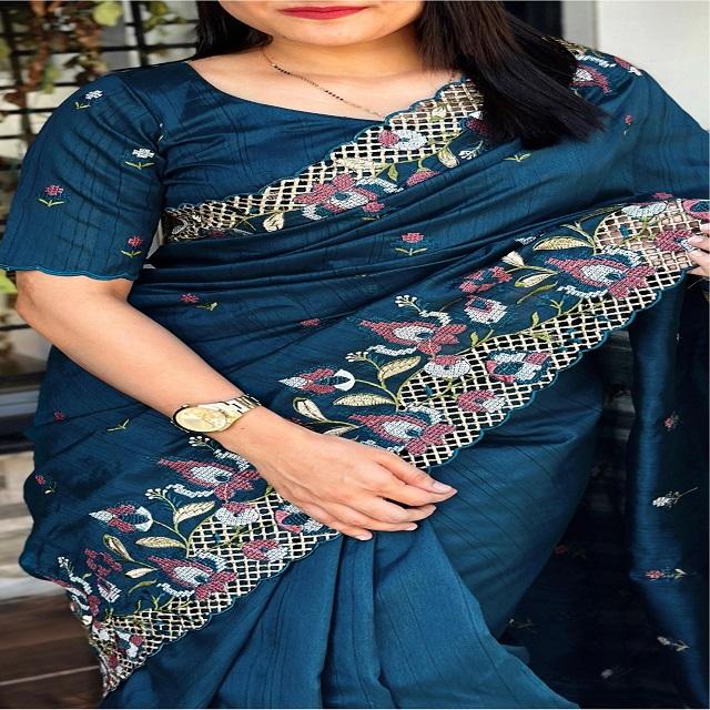 Nombre del producto:Hermosa Slub Seda Saree Con