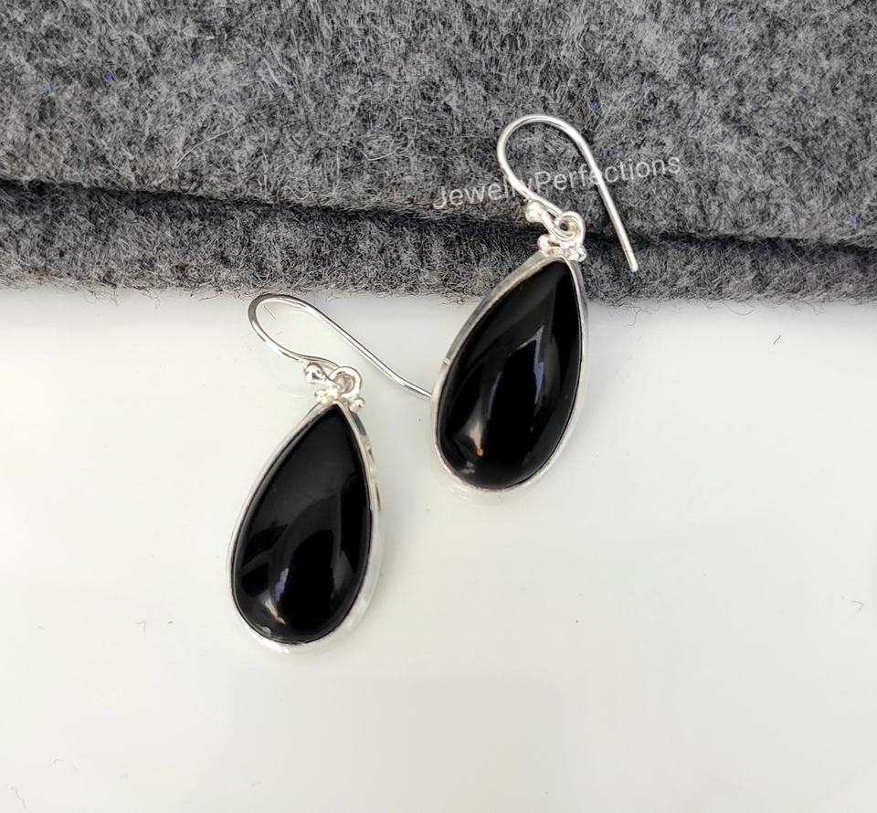 Nombre del producto:Pendientes Colgantes de Ónix Negro en Forma de Pera