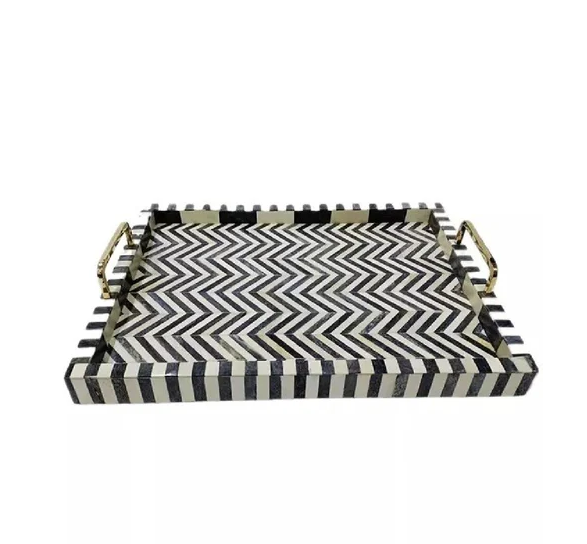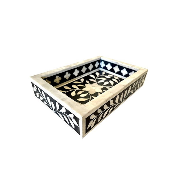 Bandeja con Incrustaciones de Hueso de Excelente Calidad, Mejor Precio, Diseño Rectangular Marrón Moderno, Multifuncional, Personalizable, Decorativa de Varias Piezas