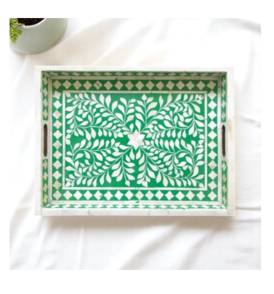 Bandeja con Incrustaciones de Hueso de Excelente Calidad, Mejor Precio, Color Verde, Cuadrada, Decoración para el Hogar y la Cocina, Modelo de la India de la Mejor Calidad