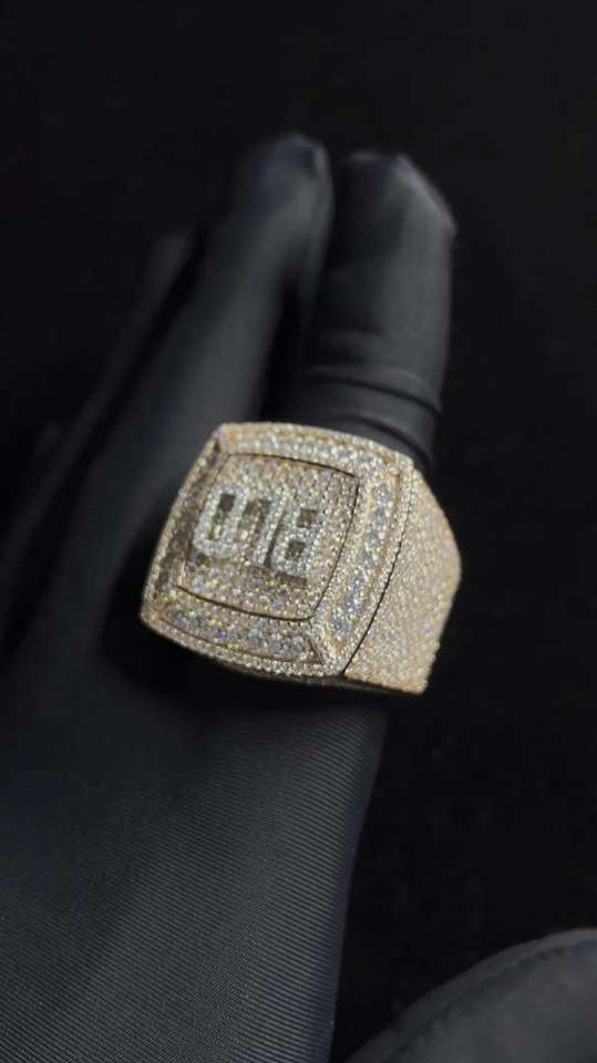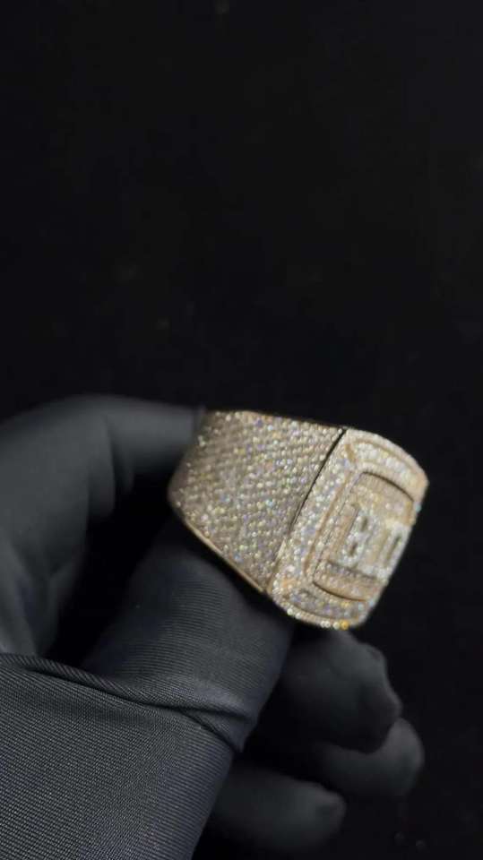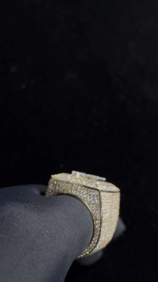 Anillo de Moissanita Chapado en Rodio con Diamantes de Imitación Dorados Personalizable de Excelente Calidad, Estilo Hip Hop, con Piedras Brillantes Disponibles para Exportación