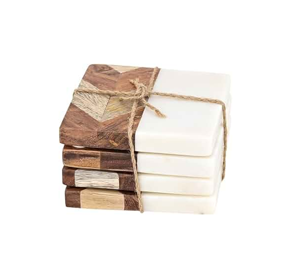 Posavasos Cuadrados Reutilizables Hechos a Mano de Madera y Mármol de Estilo Rústico, Ecológicos y de Excelente Calidad - Regalo de Navidad Personalizado
