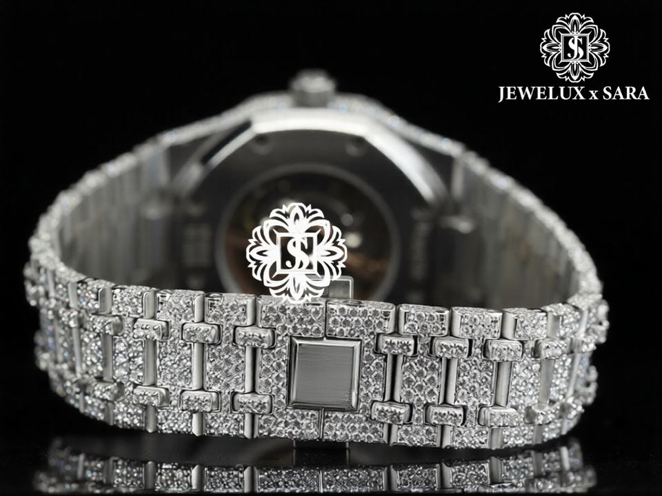 Reloj de Diamantes Completamente Blanco de Excelente Calidad con Caja de Acero Inoxidable para Fiestas y Eventos Disponible para la Venta
