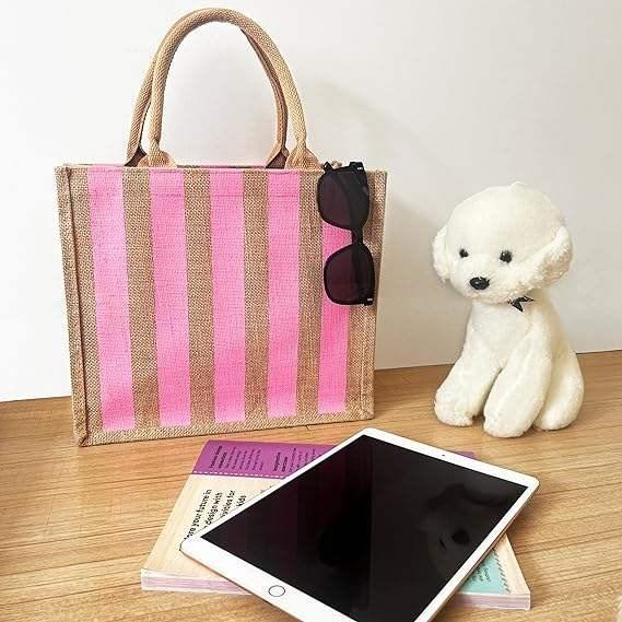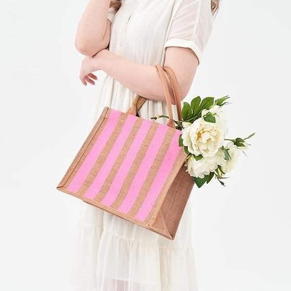 Bolsa de Yute con Estampado Geométrico de Excelente Calidad, Bolsa de Compras Elegante para Tiendas de Moda, Disponible a Precio de Fábrica