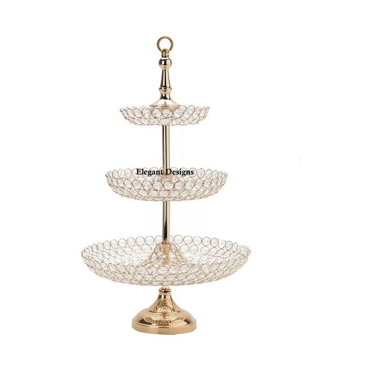 Base para Pastel de Metal de Excelente Calidad, con Cuentas de Cristal, Bañada en Oro, de Dos Niveles, Hecha a Mano, de Lujo, Elegante, Ecológica, con Diseños Elegantes
