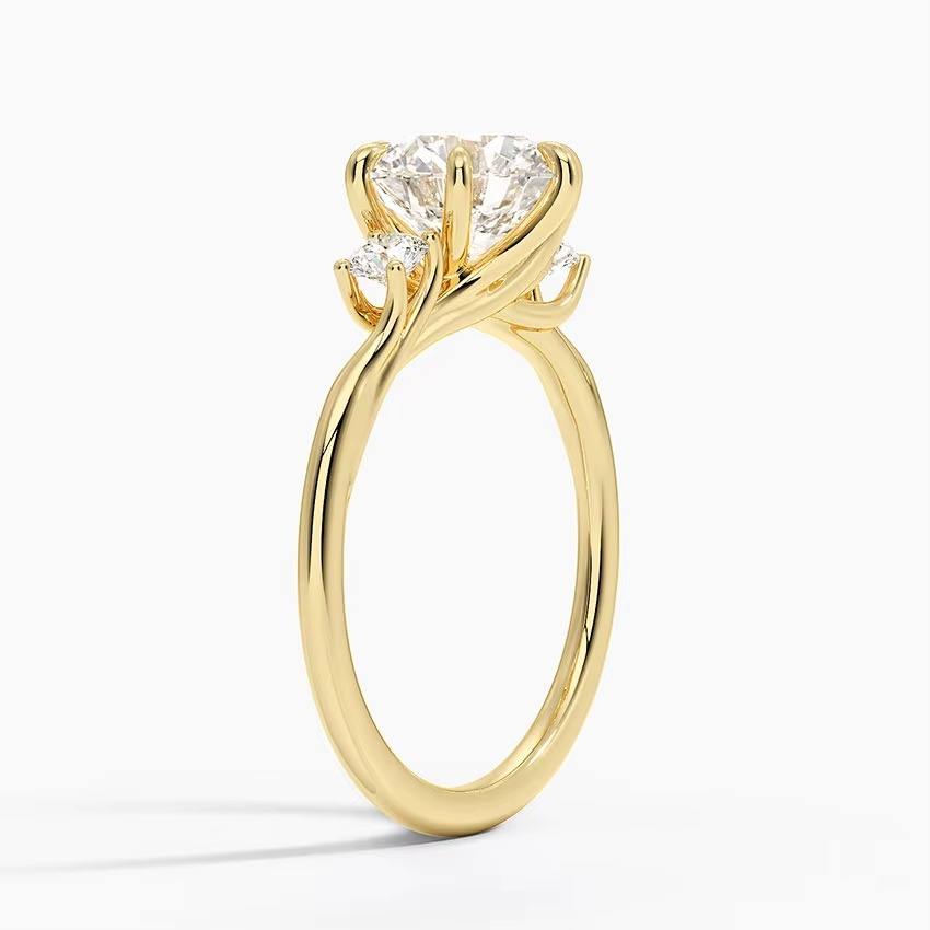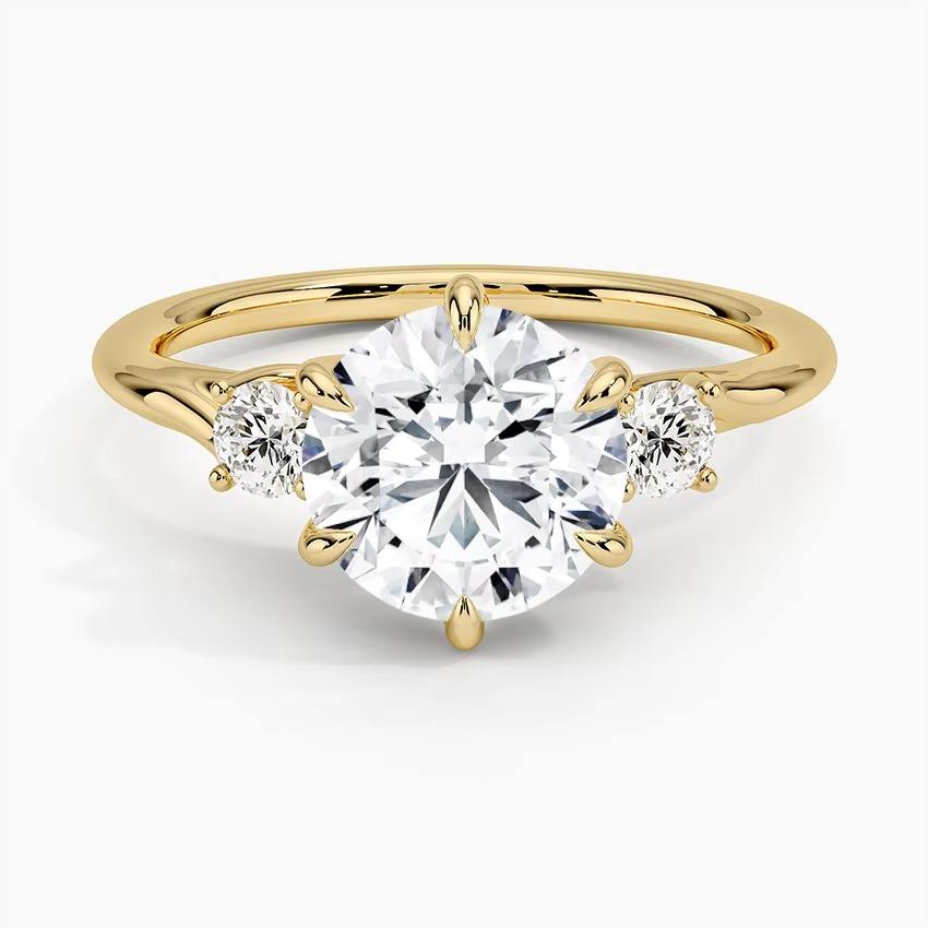 Anillo de compromiso de tres piedras con diamante cultivado en laboratorio de corte redondo en oro de 14K, anillo trilogía para regalo de boda a bajo precio.