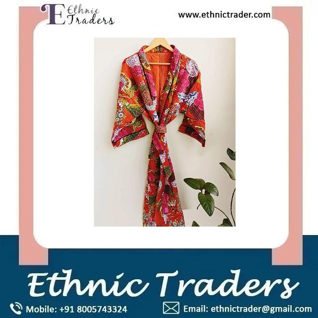 Kimono de edredón Kantha hecho a mano para mujer, estampado de Color naranja, excelente calidad, 100% algodón Natural disponible, precio a granel, India